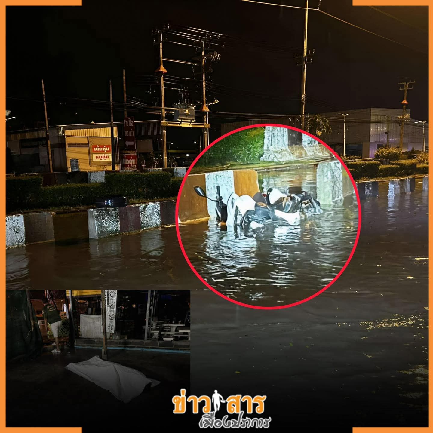 17 ปี เข็นรถจยย.ลุยน้ำท่วม ถูกไฟดูดเสียชีวิตคาที่