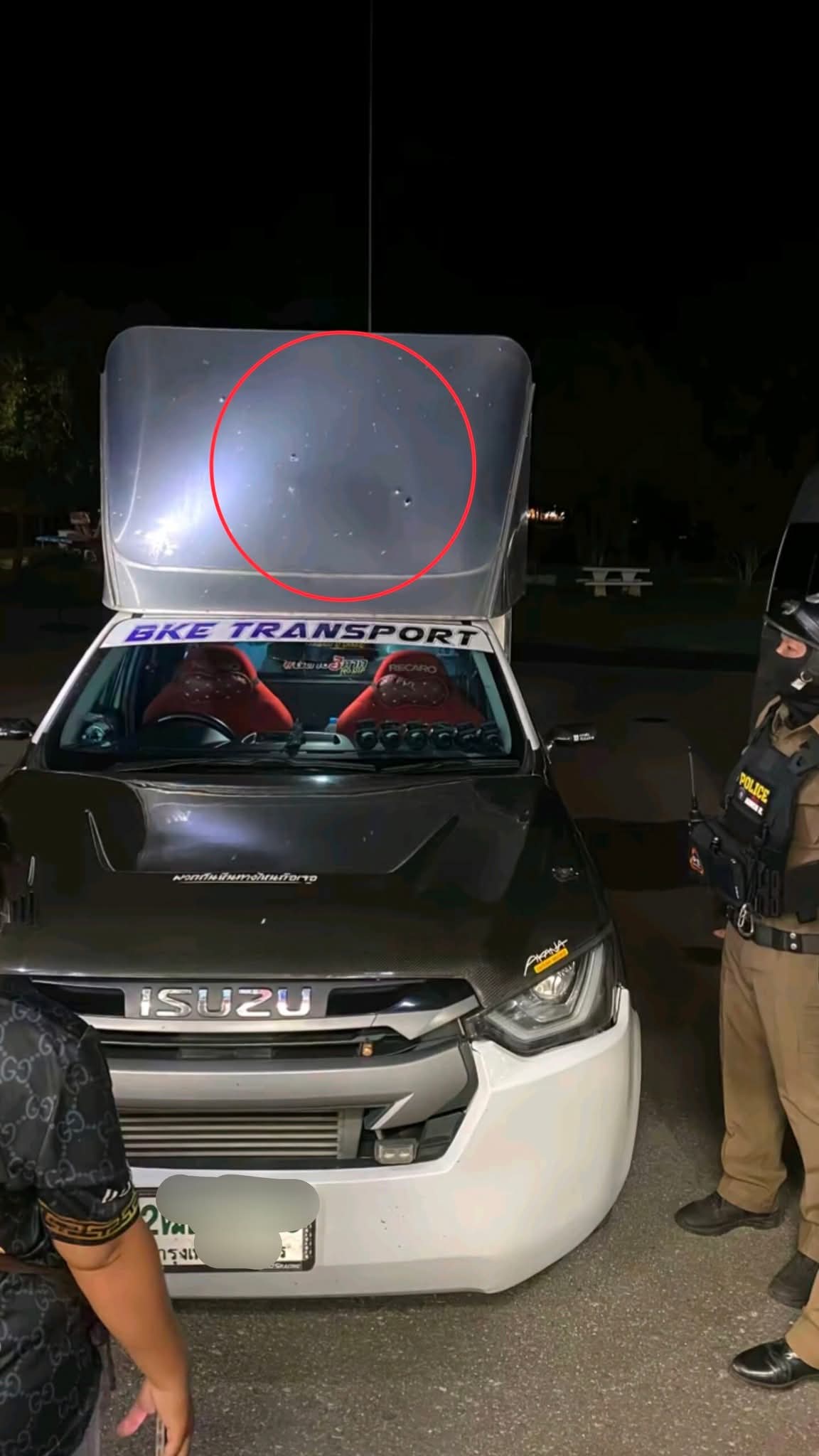 กระบะตู้ทึบ โดนไล่ยิ- 2 รอบ 15 นัด จน พรุนรอบคัน