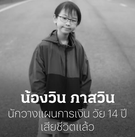 เศร้า “น้องวิน ภาสวิน” นักวางแผนการเงินรุ่นใหม่ วัย 14 ปี เสียชีวิตแล้ว
