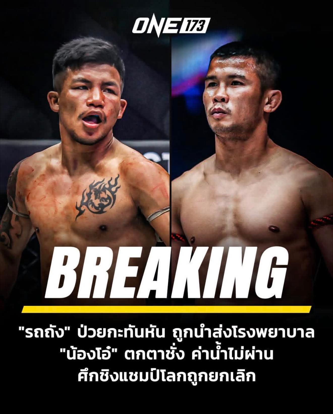 "รถถัง" ป่วยกะทันหัน "น้องโอ๋" ตกตาชั่ง ยกเลิกศึกชิงแชมป์โลก มวยไทย รุ่นฟลายเวต