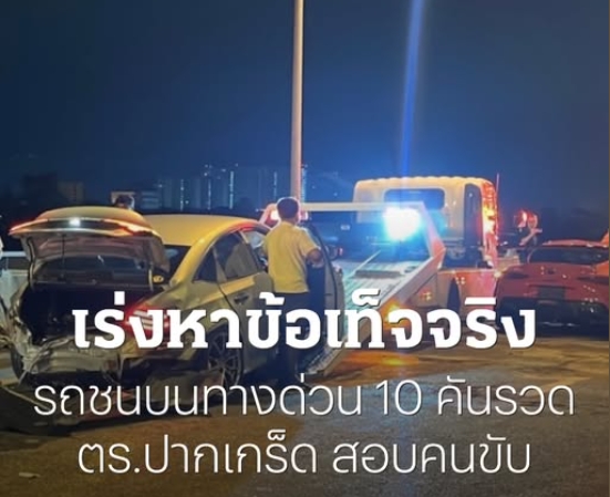 ตำรวจปากเกร็ดเร่งหาข้อเท็จจริง อุบัติเหตุรถชนกันบนทางด่วนอุดรรัถยา เสียหายรวม 10 คัน