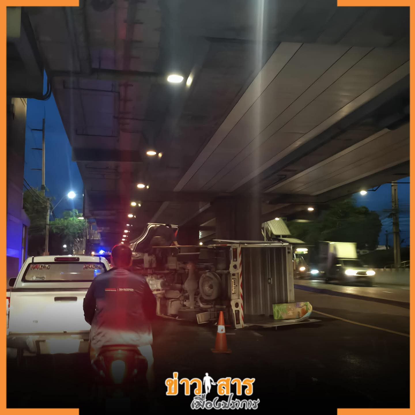 อุบัติเหตุเช้าวันจันทร์! รถสี่ล้อพลิกตะแคงกลางโค้งบางปิ้ง